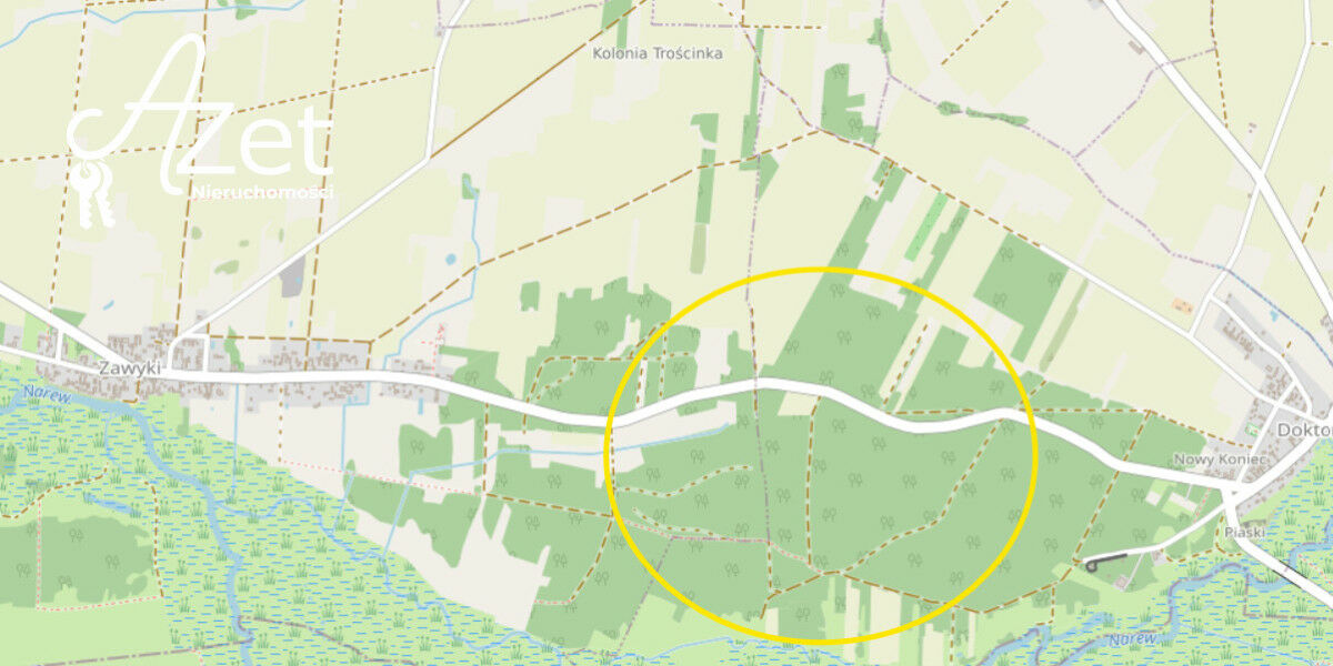 Na sprzedaż działka leśna o powierzchni 5,68 haSprzedam las mieszany sosna/ świerk i ok 1 ha brzozy, wszystko w jednym kawałku o powierzchnia 5,68 ha, położona w spokojnej i malowniczej okolicy niedaleko miejscowości Zawyki gm. Suraż